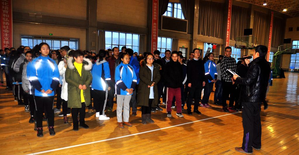 文体活动有:3分钟集体绕8字跳长绳比赛、投篮比准、三人四足接力赛。表现最精彩的是初一、初二级部,连续的投篮命中赢来阵阵喝彩。